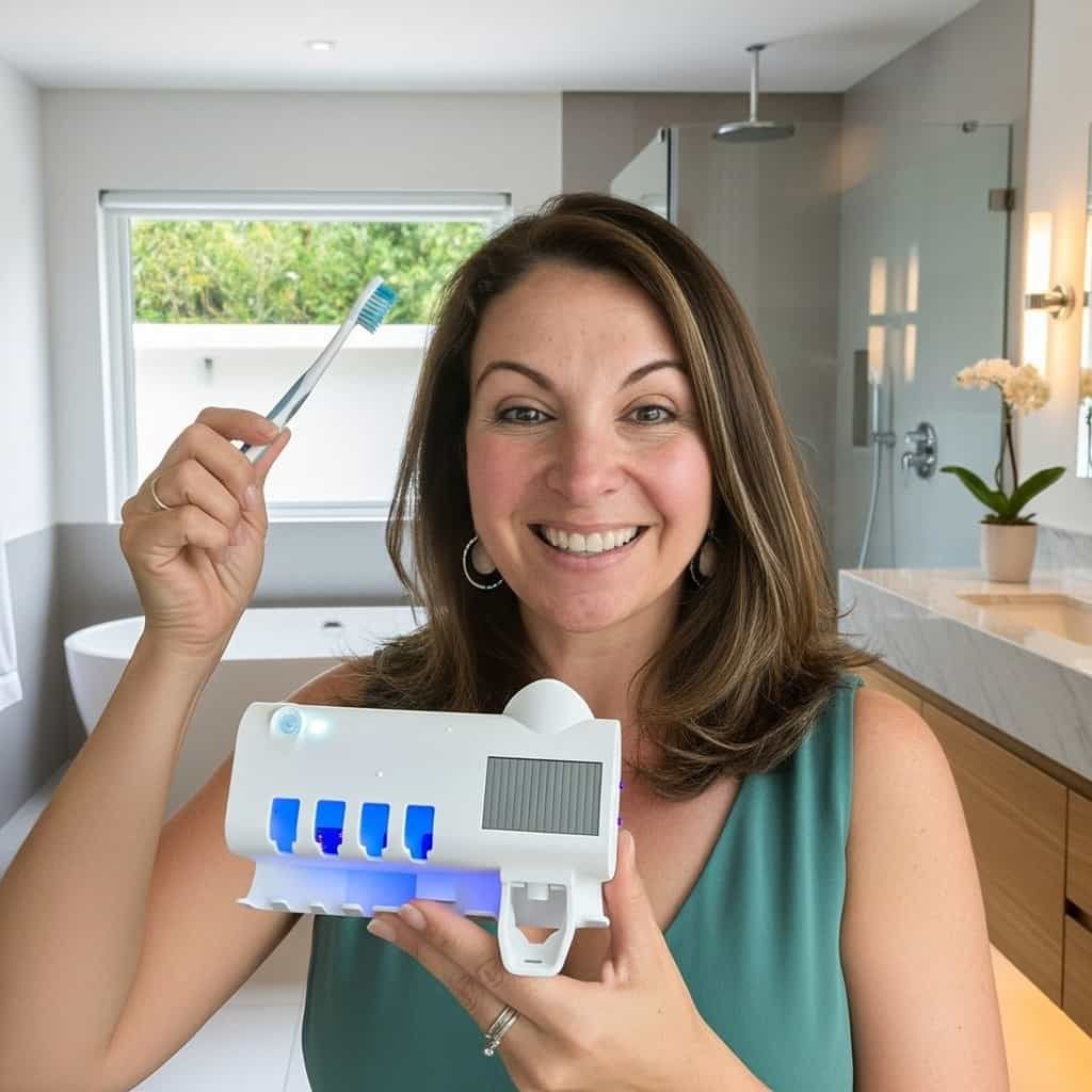 Piensa en tu cepillo como en tu cuchara: ¿pondrías un utensilio que va directamente a tu boca en el baño? tu cepillo necesita un lugar seguro y limpio donde protegerse como lumixpro™